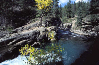 Wieder zurück unternahmen wir eine kleine Wanderung zum spektakulären "Maligne Canyon". Der Weg schlängelt sich bergab und kreuzt sechs mal den Canyon. Tief unten tost der Fluß durch die enge Schlucht.